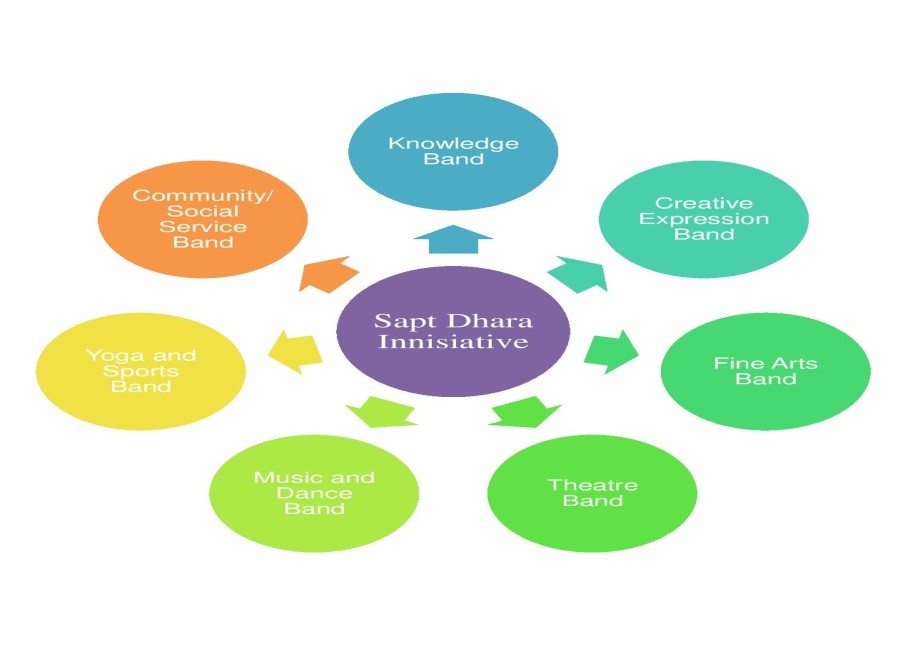 The institute is always eager to promote more creativity and imagination in students. In the present scenario it is very important to infuse and instill within the youth the spirit of global competition and to encourage them to display and express their talents to meet challenges of the newer changing order of the world. So college has implemented Sapt Dhara Initiative activities in different spheres so that the student can explore their hidden capabilities and potentialities.