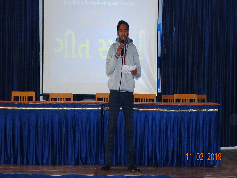 Music and dance are the part of Indian culture and tradition. This cluster develops sense of music, dance and poetry among students. Activities like poetry recitation, music competitions, Talent Hunt Programmes, dance competitions, Garaba and classical dance competitions were organized by the college students. The main objective of this cluster is that of making students understand the innate and deeper meaning of music and enabling them to enjoy the spirit and sense of music from the depth of